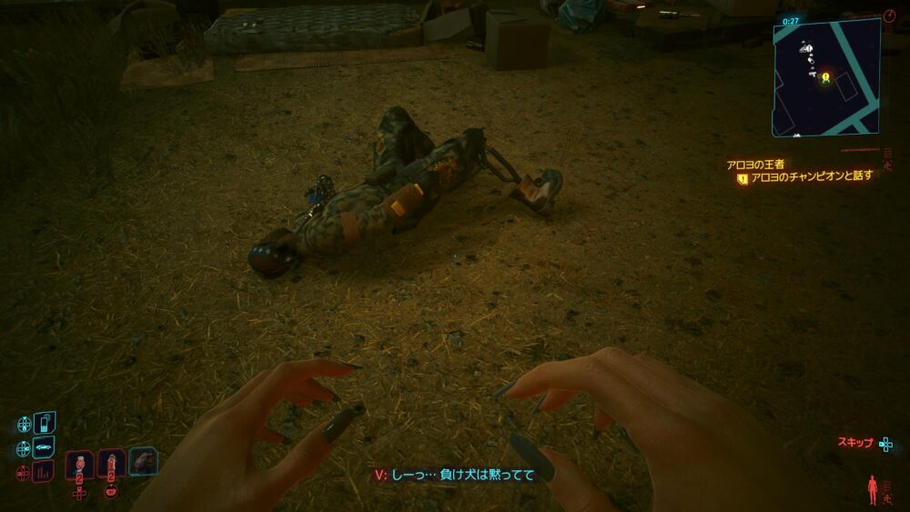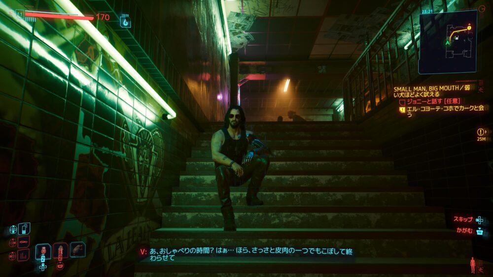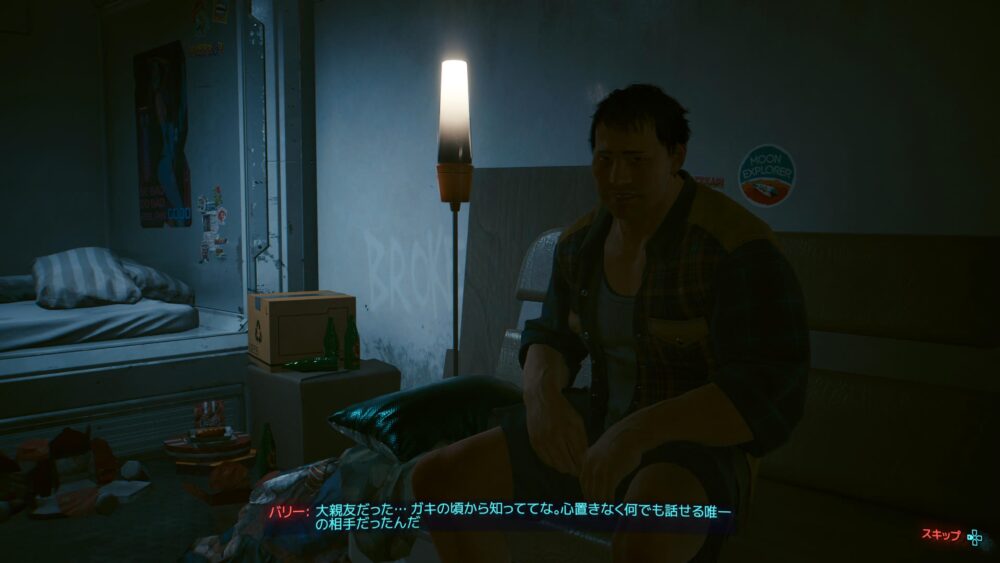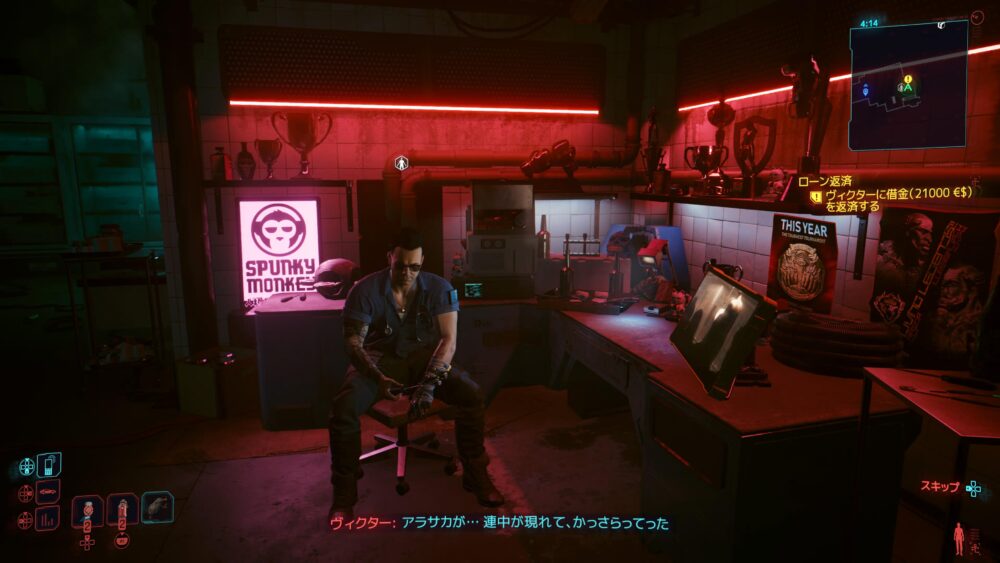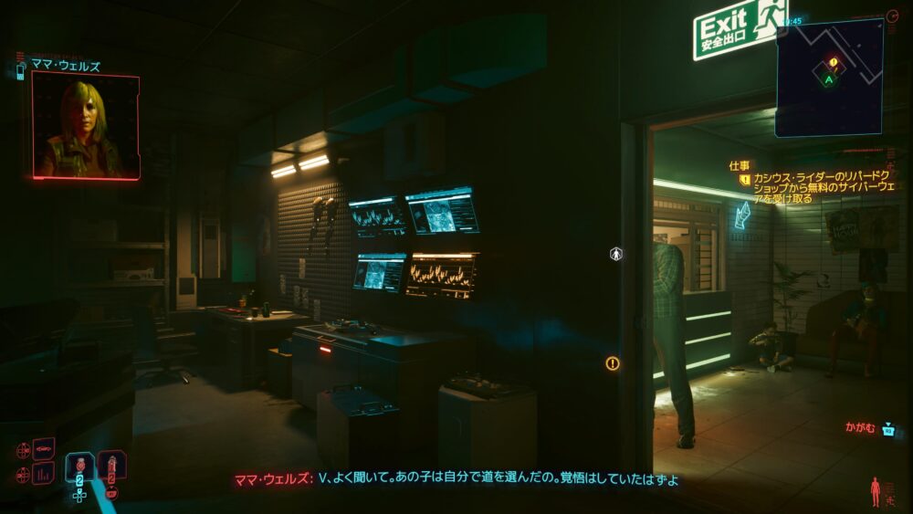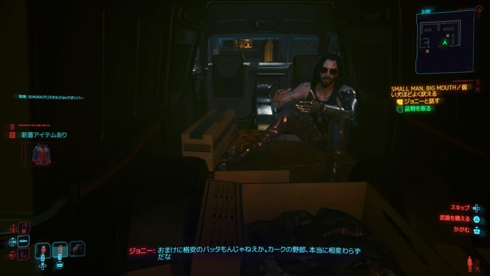 サイバーウェアを買いたくてヴィクターのところへ。ジャッキーの死体をヴィクターのところに届けてもらったんだけど、その後アラサカ社に盗まれてることがわかりました。