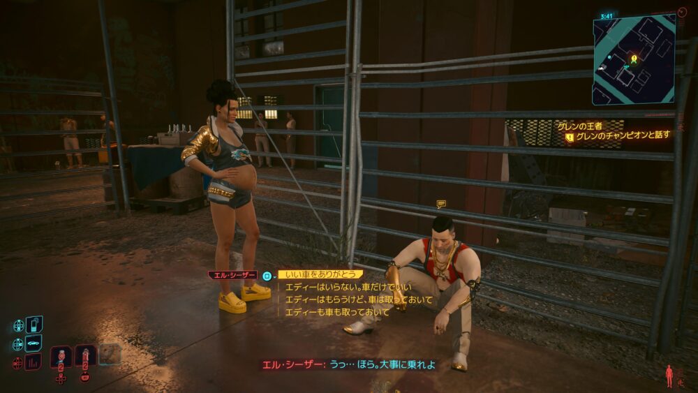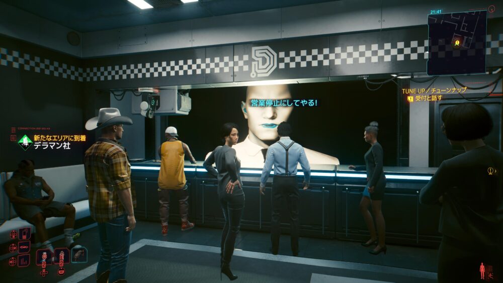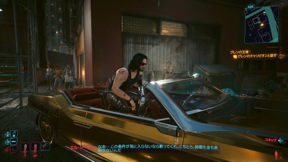 序盤でVをしょうもない任務につき合わせたカーク、という男の依頼をやりにきました。突っぱねてばかりいてもお金がもらえないし、仕方ないね。仕事を選べる立場にないのだ。いつもバーガー食ってるデブもいます。