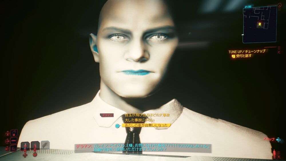 Vの車がぶっ飛ばされたのはデラマン社の暴走タクシーが原因なんだけど、本社に向かったら似たようなクレームが殺到してるみたいです。全部デラマンのAIが対応してるから受付に人がいないのが面白いですね。でもこれ、一件ずつしか対応できなくない?