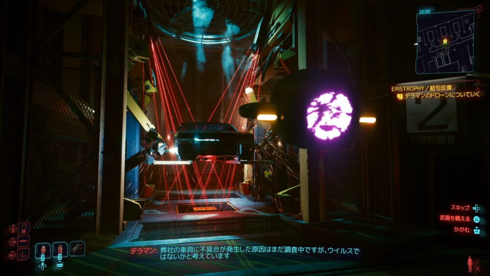 どうもデラマンから直々に依頼があるみたいで、ふつうは見せてもらえない本社の中を見学させてもらう。暴走タクシーの原因はウイルスだと考えられてるみたいですね。