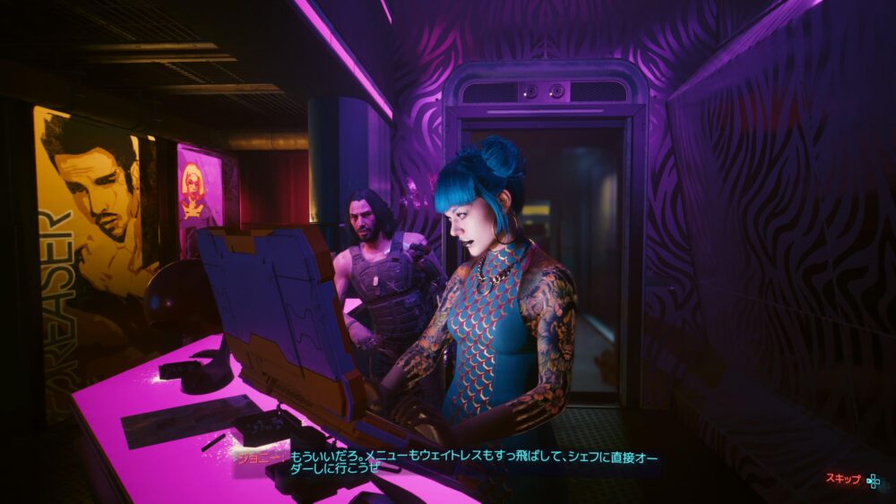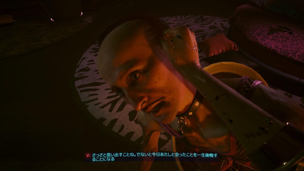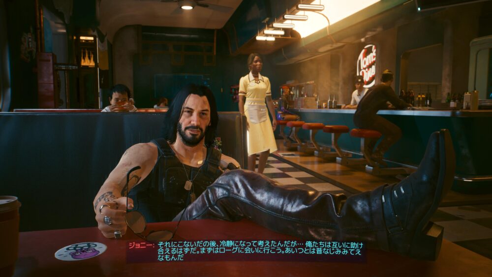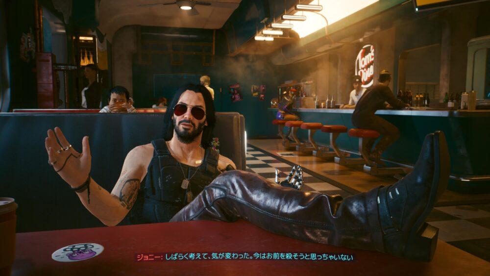最初に現れたときはVを殺そうとしていたジョニーだけど考えが変わったとか。この変わり身が信用できないんだよな~~~! こういうバディものって古今東西あるけどサイバーパンクだしな、という負の信頼がある。最後まで仲良くせずに終わるとか、あるいは仲良くしてたのに裏切られるとかありそう。