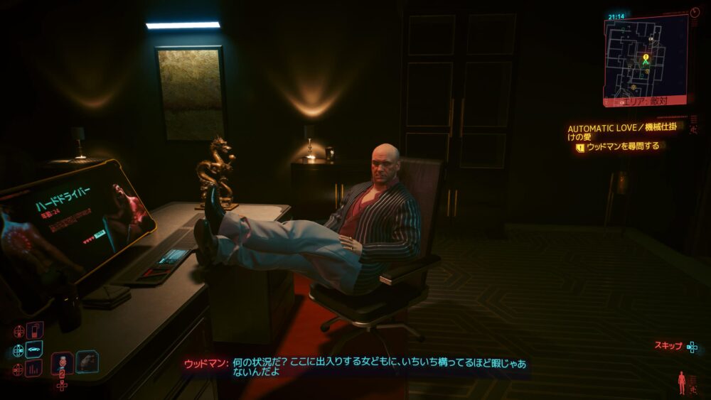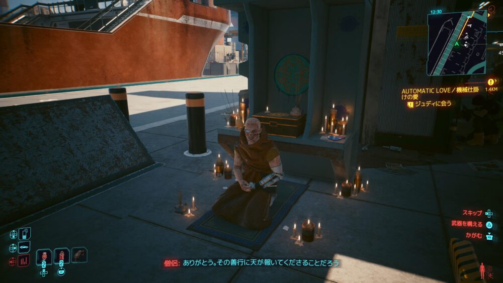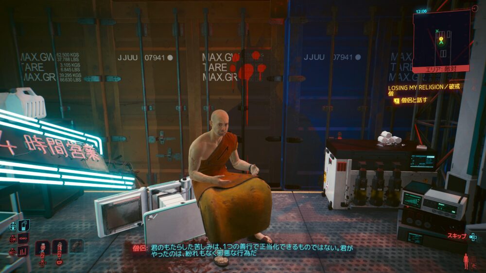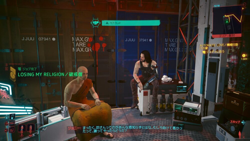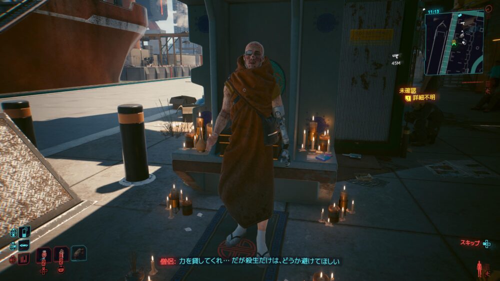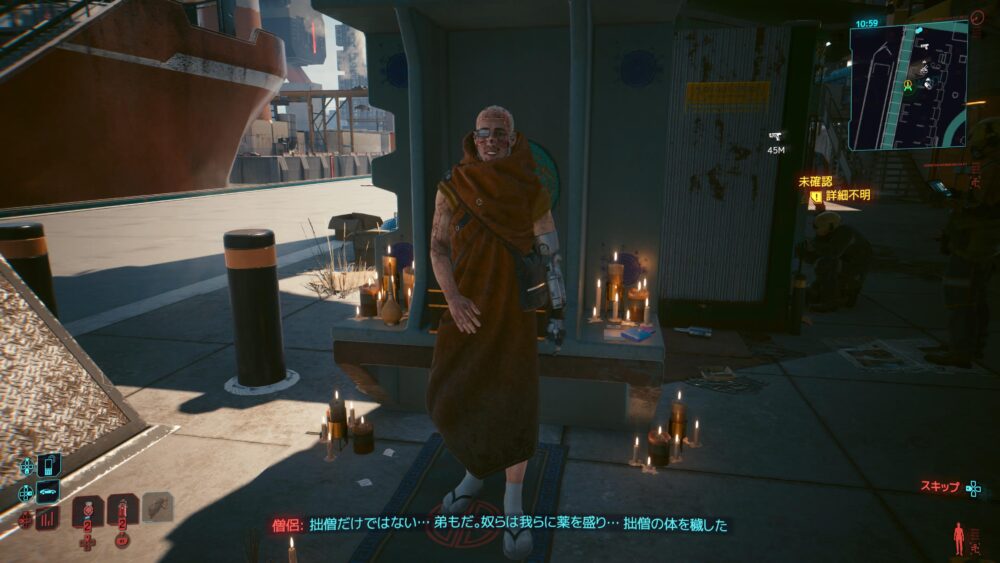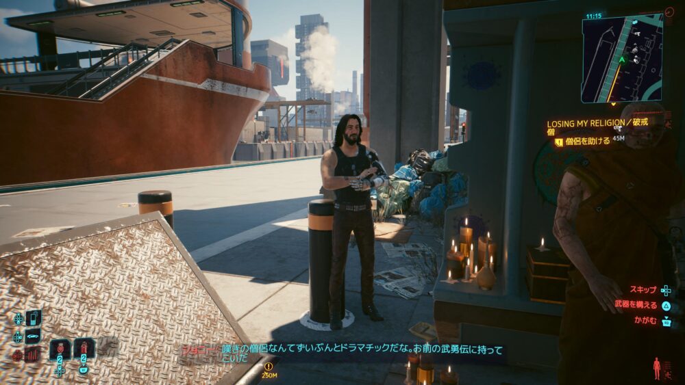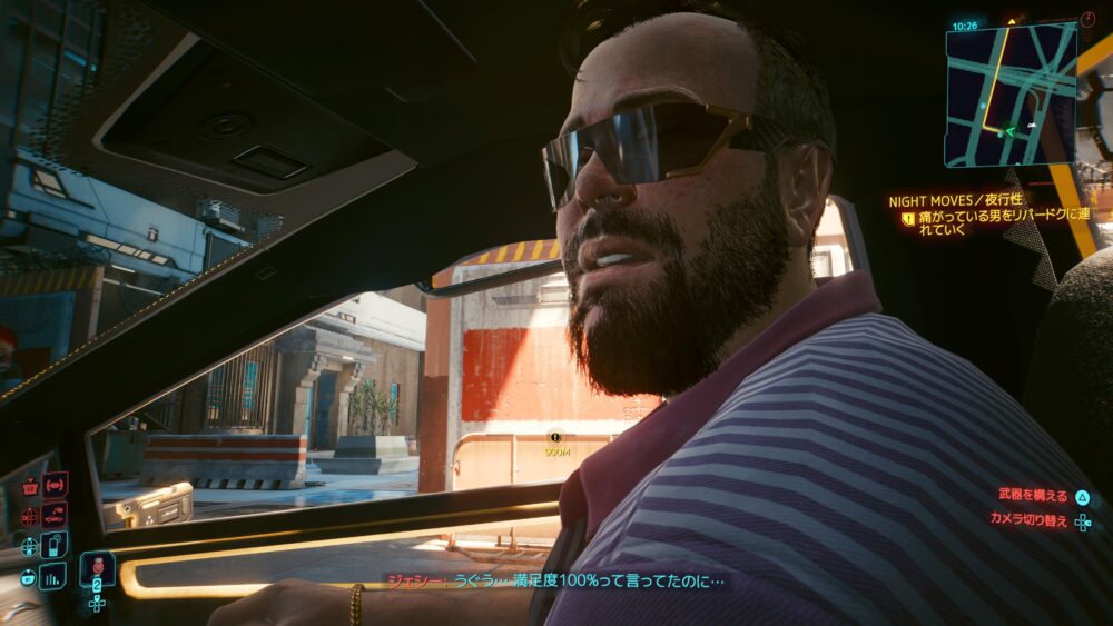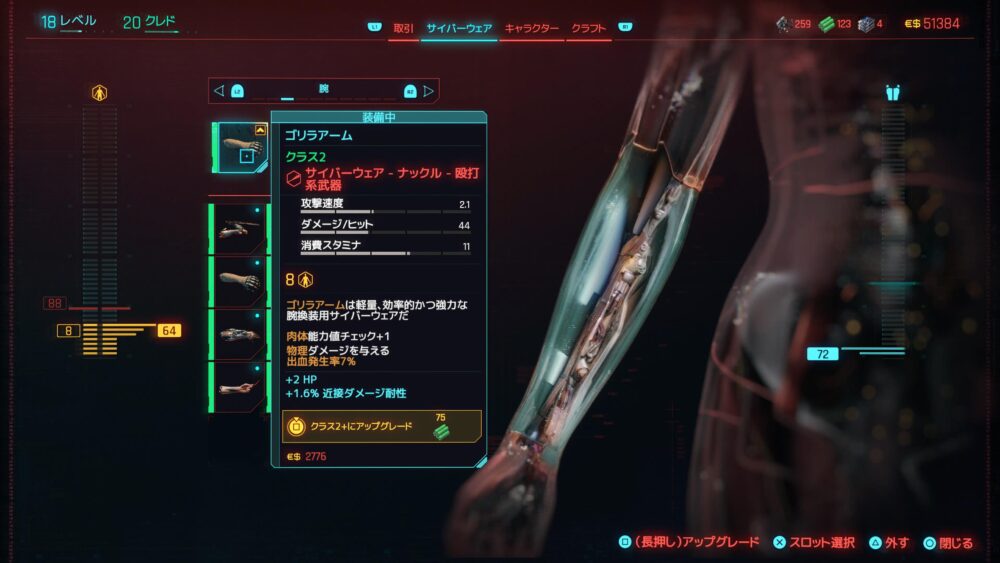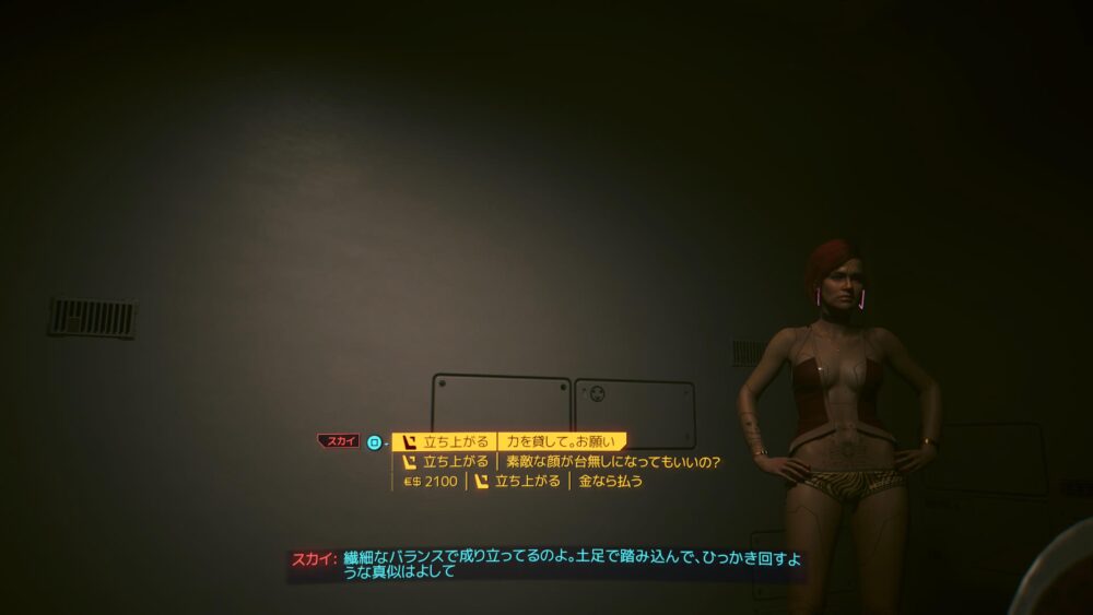 リパードクのところに行ってゴリラアームを外してもらう。サイバーウェアの換装はリパードクを介さないといけないから大変ですね。普通の装備みたいにつけ外しができたら、まあ世界観壊れちゃうから仕方ない。