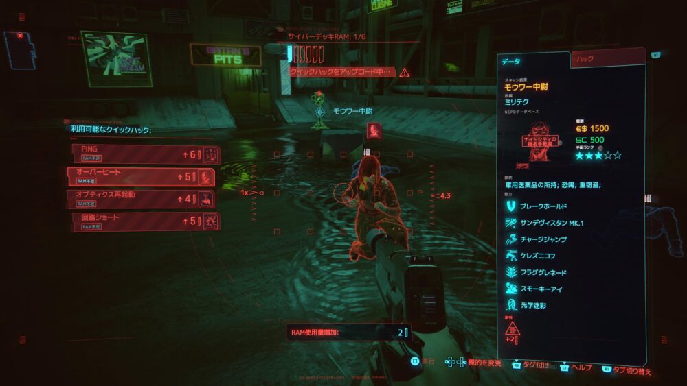 結局、スマートハックでモウワー中尉を炎上させて、その間にカウンターパンチで仕留めました。なんとか死んでない。サイバーサイコシスは難敵ですね。