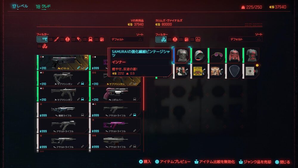 このお店ではsamuraiグッズが売ってるみたいで、なんか着やすそうなTシャツ辺りは買っておきました。でもこれを着てるVを見てジョニーはどんな気持ちになるんだろうね。