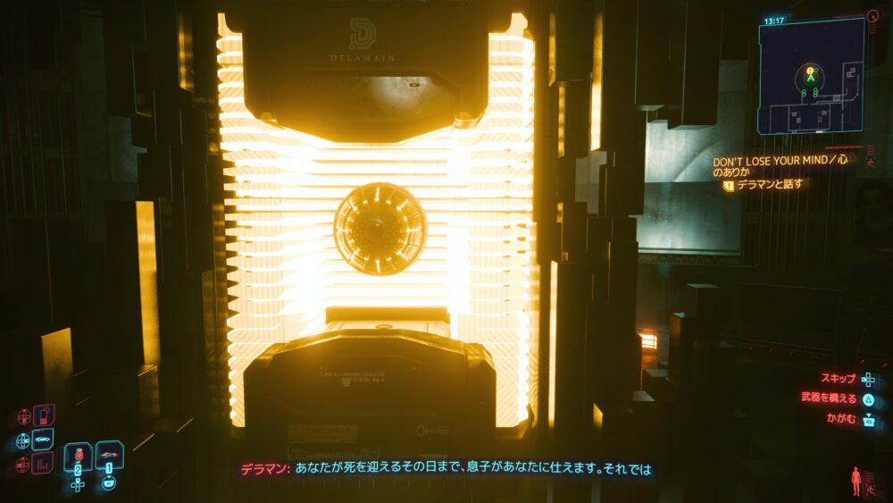 Vはデラマンのことを気に入ってて、それが声色に現れるんですよね。それはやっぱりジャッキーと自分を救ってくれたという恩からくるものなのかも。何にせよ、デラマン(父)はどこかに行ってしまったみたいだけど、デラマンの息子は残ってくれてうれしいです。知力16まで振った甲斐があったよね。