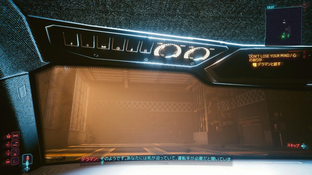 Vの車、ジャッキーのバイク、その下にデラマンが! これでいつでも呼び出して乗れるようになりました。運転手はまあ、Vになるんだろうけど。