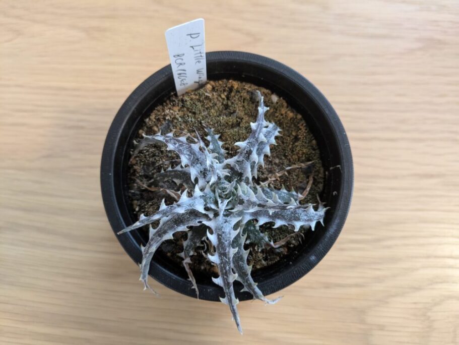 ディッキアを知ってから色々調べてその中で一番気に入ったのがガンダルフです。鋸歯(トゲ)がうねって変な方向を向いていて、ファンタジーの邪悪な剣みたいでカッコいいんですよね。こちらはメルカリで発根済みの子株を購入しました。冬に、冬に色々買いすぎ!!