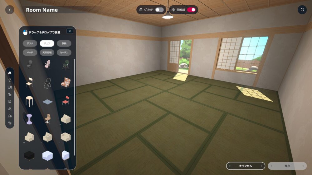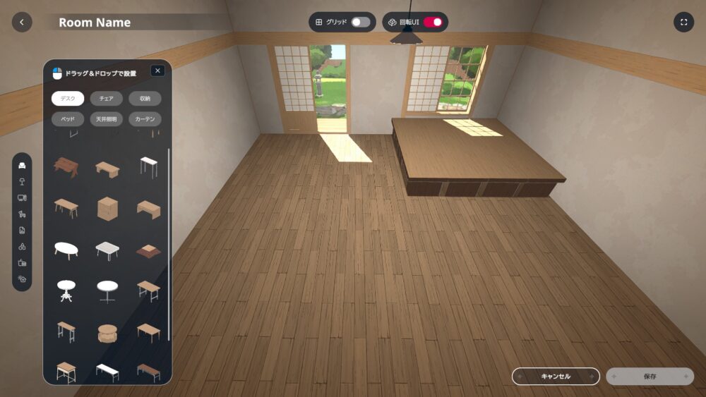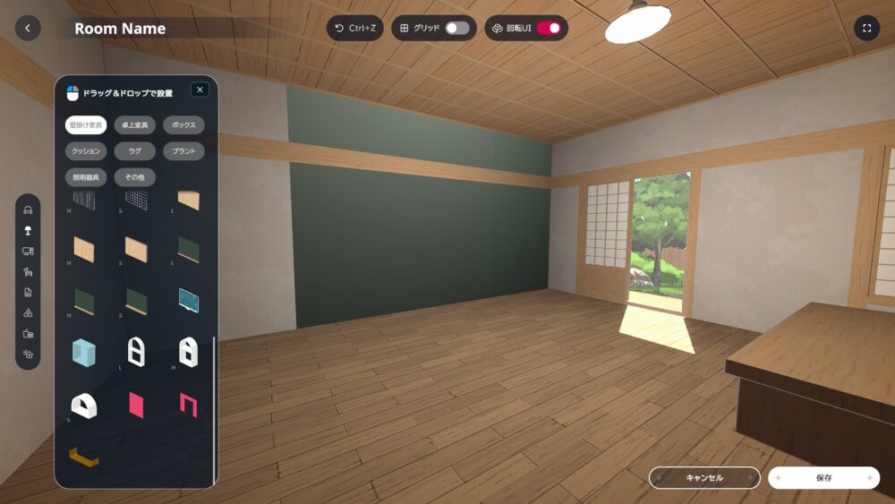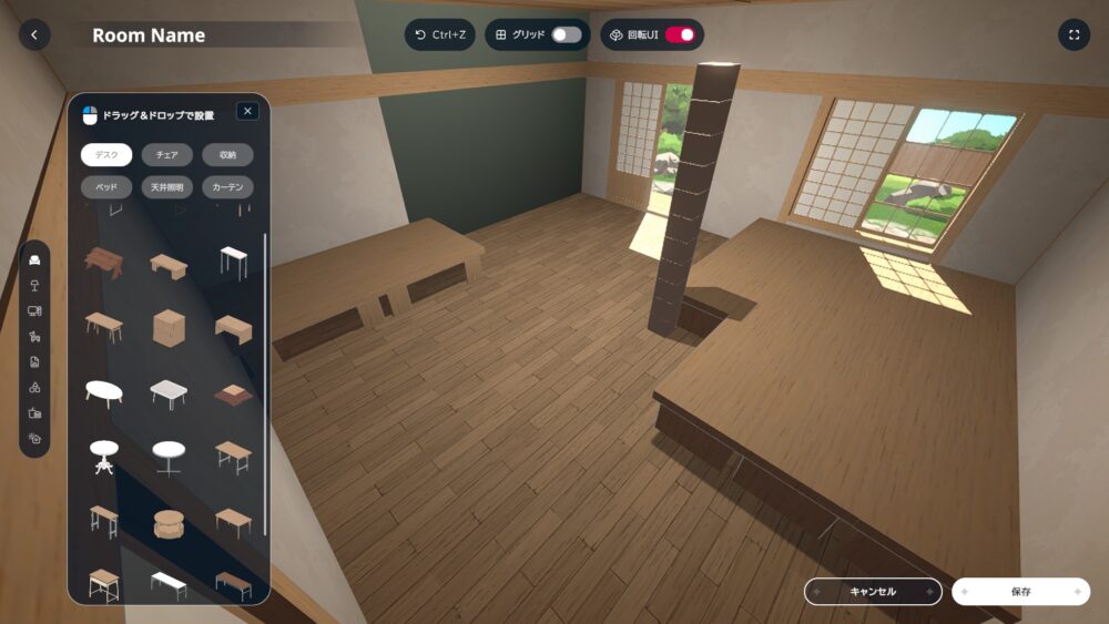 正直、何のゲームでも和風の部屋づくりって難しくてあんまりやりたくないんですよね。リアルに和室で育ったので、和室=生活感というか。インテリアのハレとケで言えば、ケの方で見てしまう……。