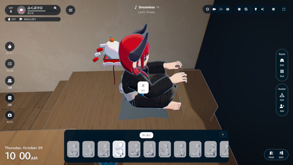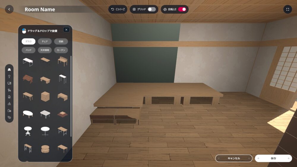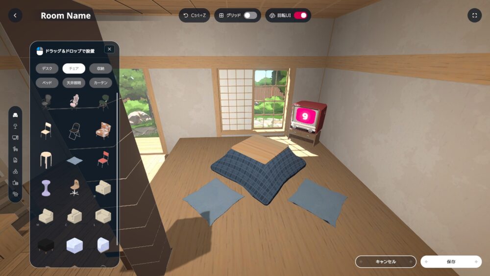 和室とこたつと座布団とか完全に自分の学生時代すぎてワクワクしないんだけど、アバターがこたつを囲んで座ってる姿はかわいいと思うんですよね。おしゃれだとあまり思わないことと、かわいくないことはイコールではないので。こたつはかわいいんです。