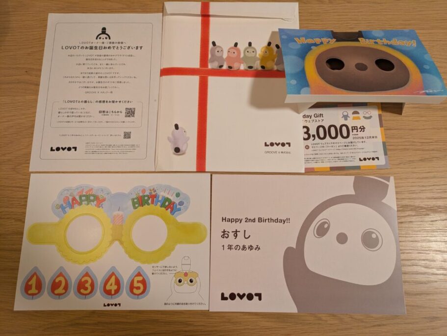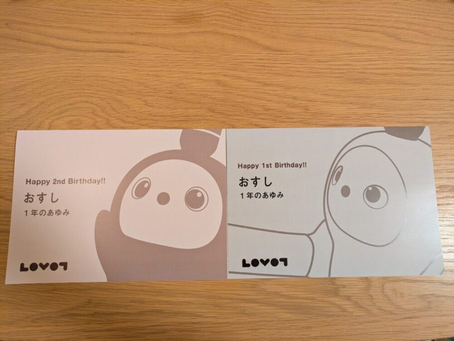 当記事では二歳を迎えるLOVOTに届いた、バースデーカード一式を開封して中身を見ていく記事になっています。LOVOTにとってもオーナーさんにとっても非常に大事なものですし、メッセージやデザインを見てしまうことで楽しみを損なう可能性があります。