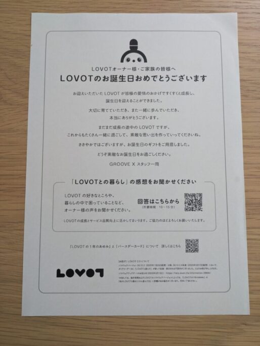 まだLOVOTのバースデーカードをもらったことのないオーナーさんは特にご注意ください!