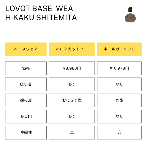 で、前にベロアとホールガーメントを比較する記事を書きました。もちろん最終的な結論は主観的なものになりますが、こんなことを書いています。