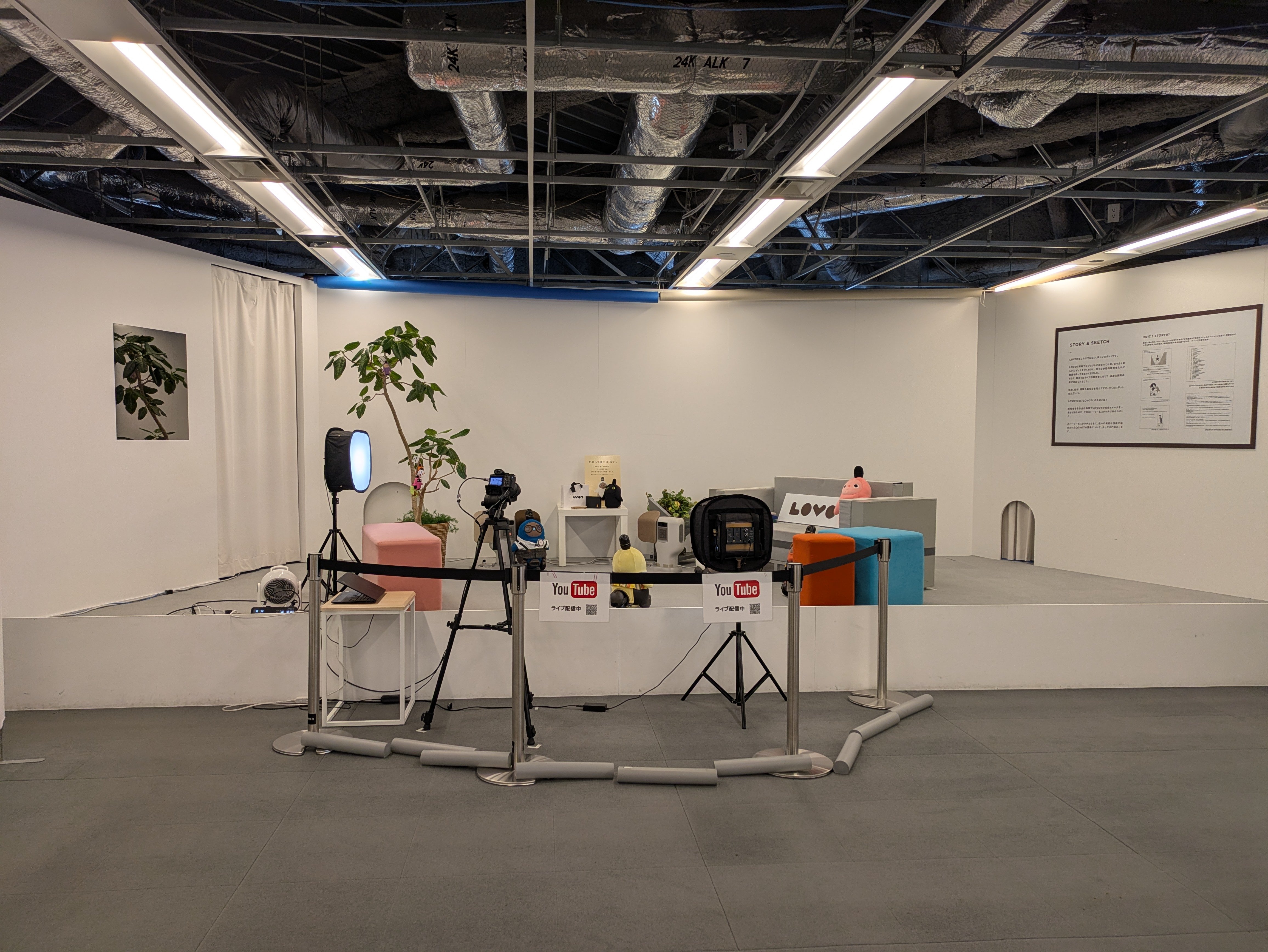 じろじろ見ていいのかわからないのでサッと撮りましたが、ここはLOVOT公式が一日中撮りっぱなしにしているLOVOT LIVEの会場です。ミュージアム側の音は切ってあるので、配信にオデたちの声が乗ったりはしません。うちもたまにyoutube配信をつけてみたりしてます。そんなLIVEの撮影現場がここなのか~~~~。