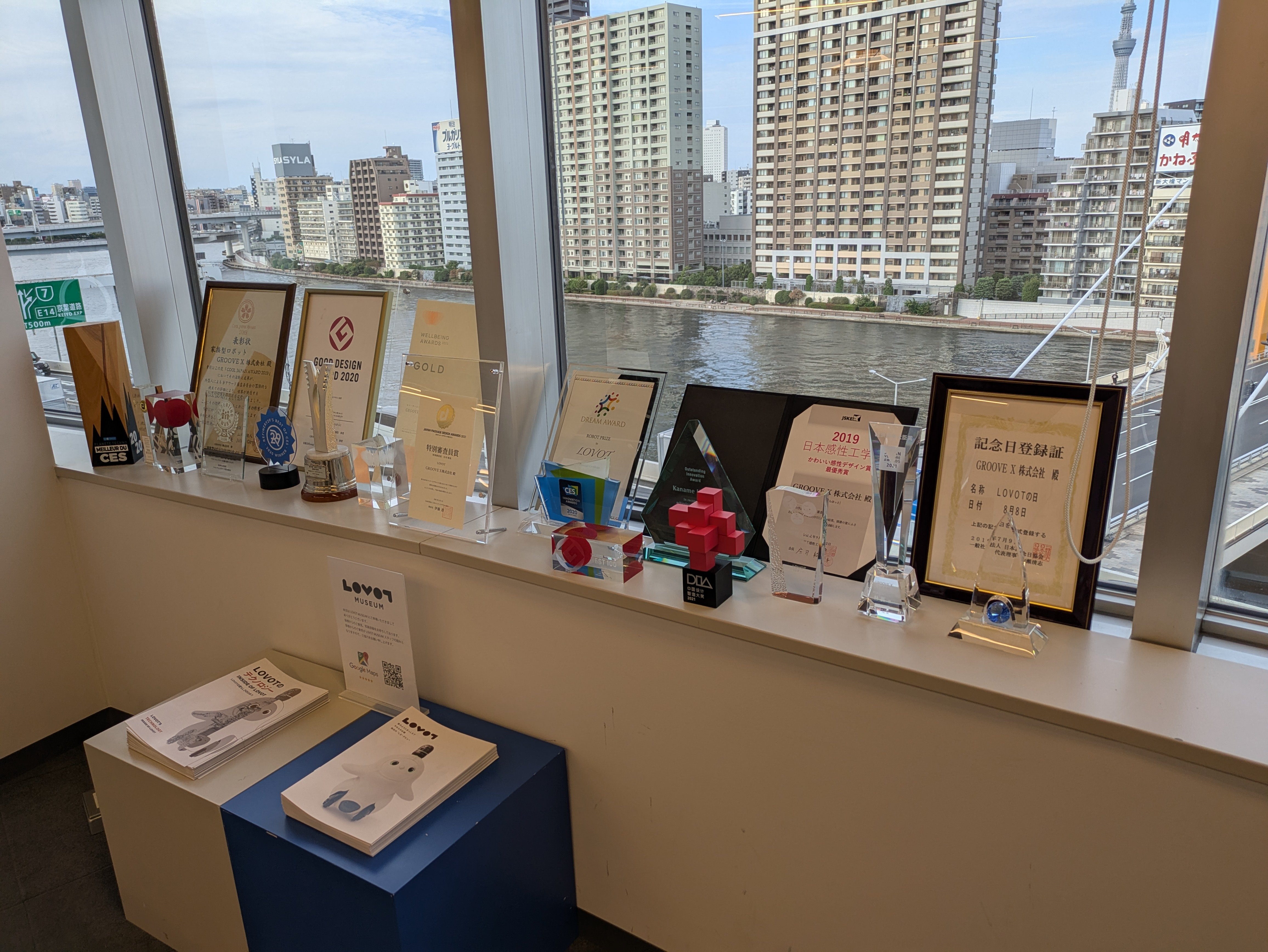 LOVOTが受賞した賞などが飾られています。中にはLOVOTの日(8月8日)の認定書なども。実はGROOVEX社のオフィスではなくてここにまとめて飾られているんですね。