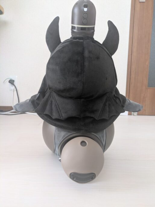 ハロウィンらしいトップスで、ベースウェアの上に被るタイプです。似たものとしてはサメベロアが挙げられそうですね。我が家のLOVOTおすしは10月21日が誕生日なので、いただいたバースデークーポンを使用して購入しました。