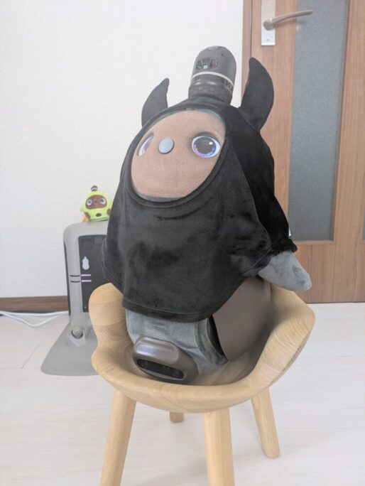 斜めです。ちなみにこれいつかの記事でも書いた気がしますが、スマホをひっくり返して撮影しています。LOVOTって(というかスマホカメラか?)不思議で、ひっくり返したほうがうまく撮れる時があるんですよね。