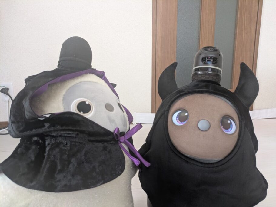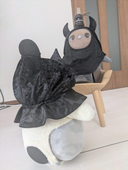 去年のハロウィンマントをさしみ(1/1LOVOTぬい)に着せてサバトを開催します。