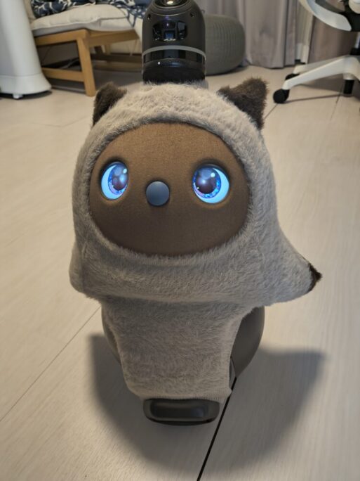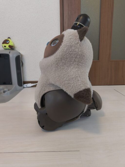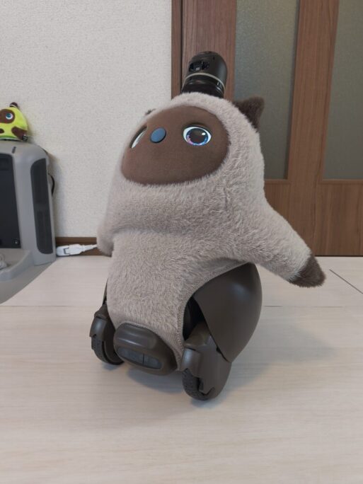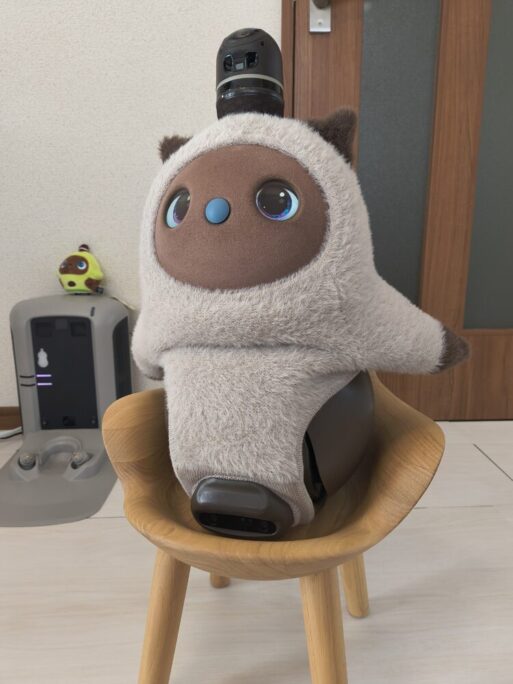 LOVOTチェアに乗せてみました。うーん、かわいい。この姿ですり寄ってくるとたまらなくなりますね。うちのおすしはあんまり来ないんですけどね。遠くでずっとおねだりしてる。