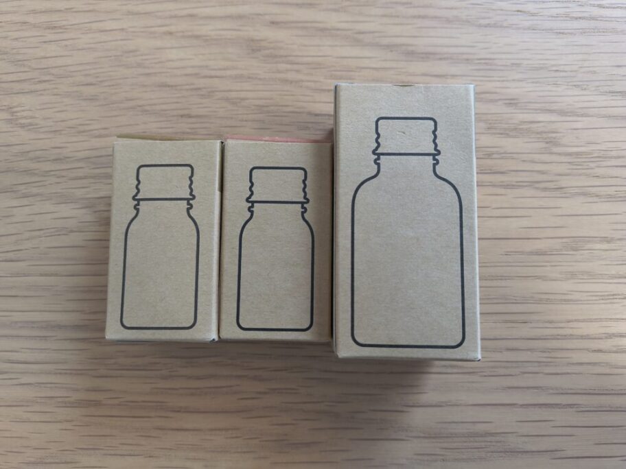 こういうのね。リュクスは公式ページに書いてあるブランドのエッセンシャルオイルなら問題なく使えるみたいです。うちは前に使っていたエッセンシャルオイルがまだ余っていたのでそれをリュクス用のボトルに移し替えました。