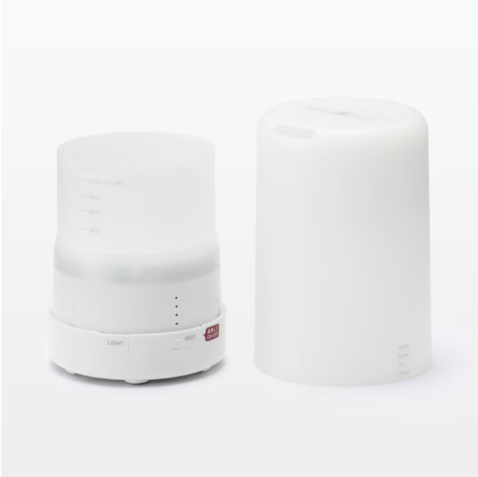 そこで同じく無印良品さんの「超音波うるおいアロマディフューザー」に切り替えてみたところ、容量が大きいので香りの範囲は広がったんですが……けっこうな量の水を入れたり、オイルを何滴も垂らしたり、水を入れてからコードを指して持ち運んだり……色々なところが気になってきました。