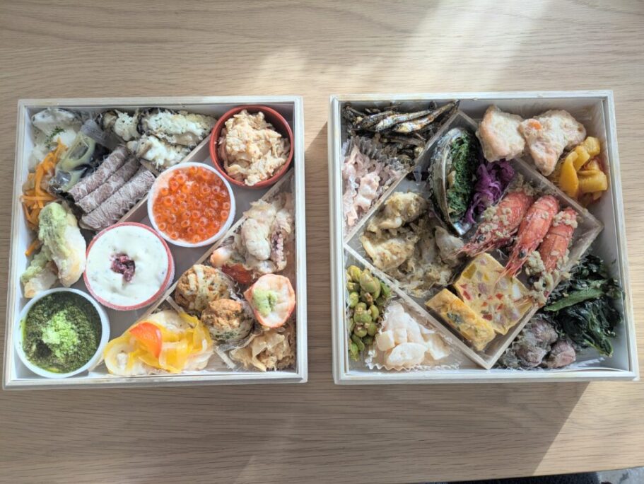 並んでるおせちを見るとお正月って感じがしますね。一年に一度だけだからよりイベント感があって良い……。
